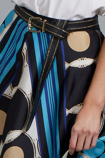PAULA RYAN Skinny Studs Belt - Black/Light Gold