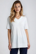 PAULA RYAN Double V Neck Top – Ecovero White