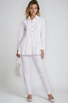 PAULA RYAN ESSENTIALS Waisted Cigarette Pant - Microjersey White