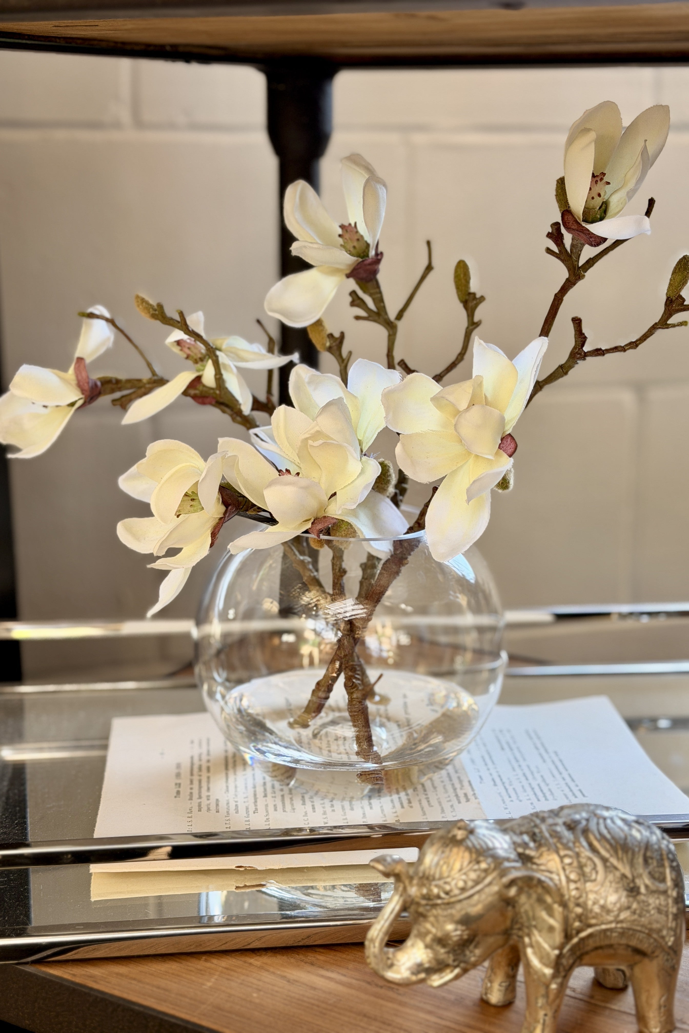 Designed and handcrafted in Melbourne, it features delicate white magnolia blossoms, buds on branches and sturdy stems.