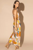 Classic, timeless and sexy, the unbiased Dress in Watercolour - a truly stunning garment designed for those unforgettable special occasions! This dress boasts a flattering bias cut, ensuring a style that accentuates your natural beauty. Delicate shoestring straps with adjustable features complement the elegant V-neck at the front, while the straight back adds a touch of sophistication. With its maxi length, this dress exudes grace and elegance. Prepare to be captivated by the striking array of colours adorning this masterpiece.
