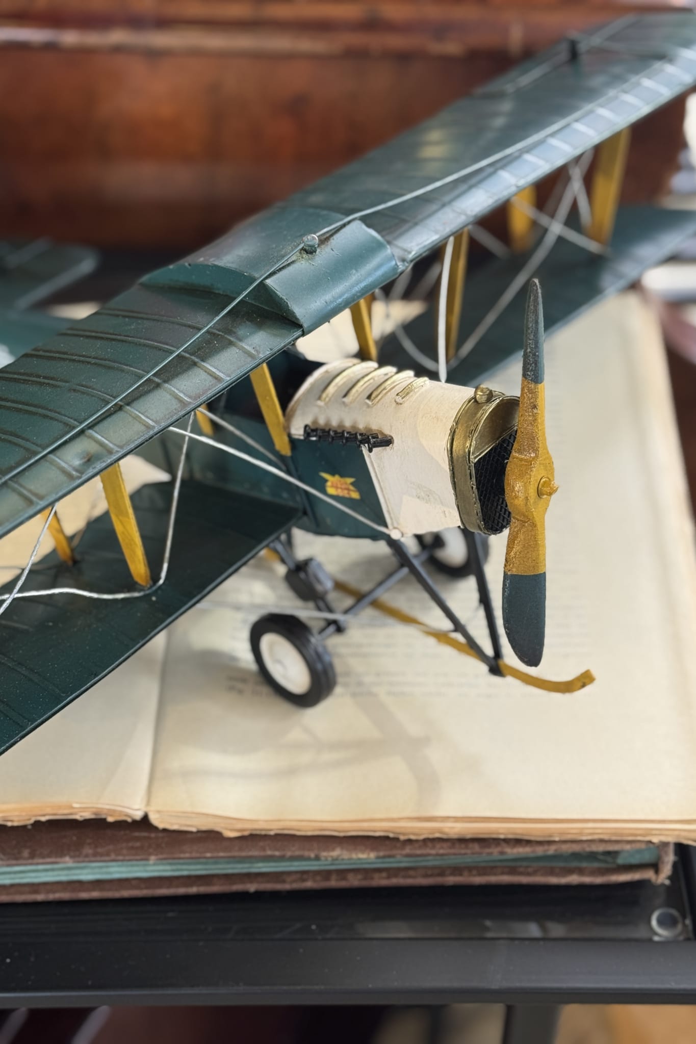 A replica vintage bi-plane carrying all the charm of early aviation. With its twin wings, exposed struts and classic silhouette, it feels like it’s flown straight out of an old airfield.