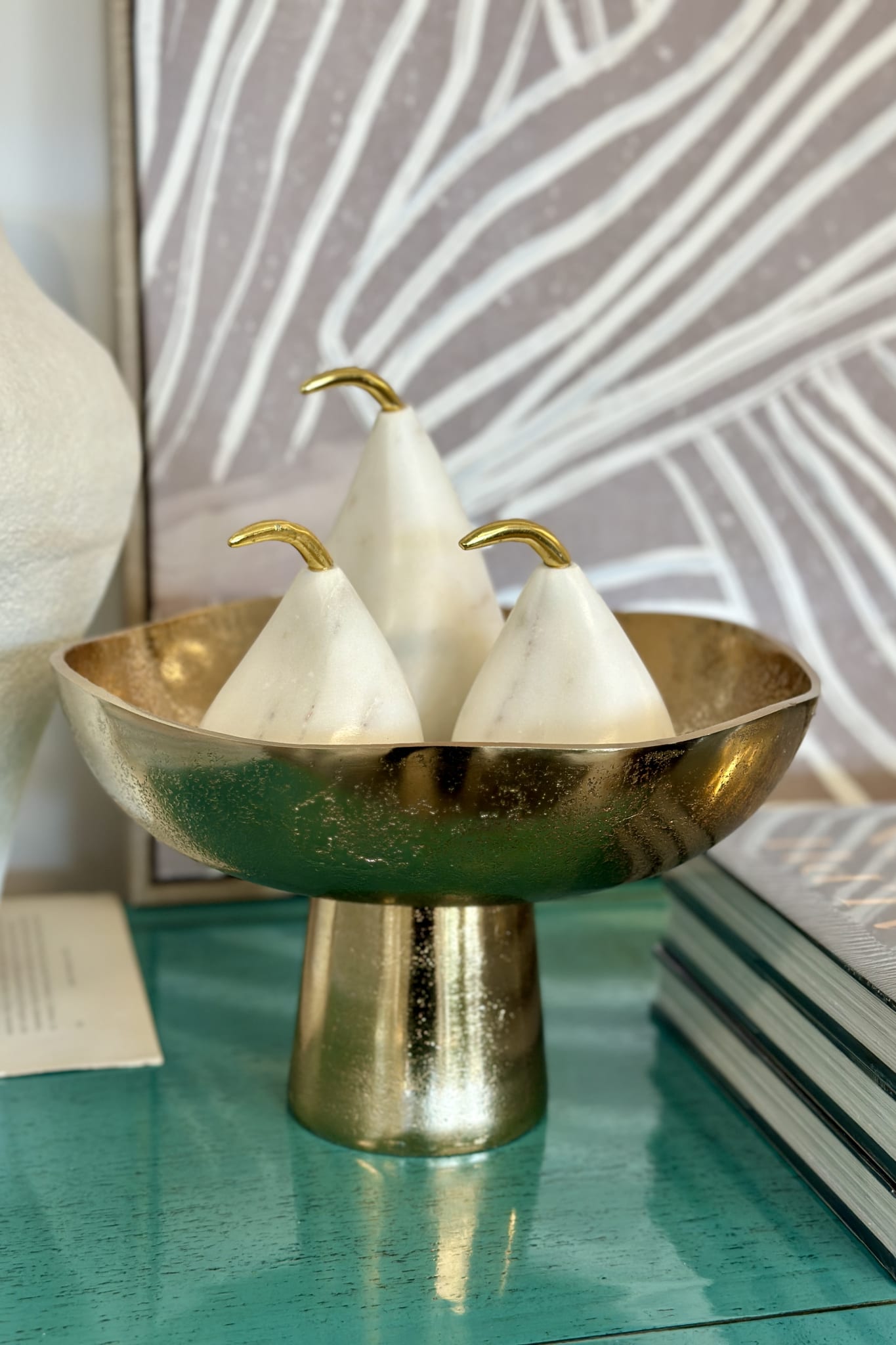 Striking enough to stand alone as a sculptural moment, yet perfect for styling with beads, fruit or decorative objects. The organic, uneven rim adds a handcrafted edge that catches the light beautifully.