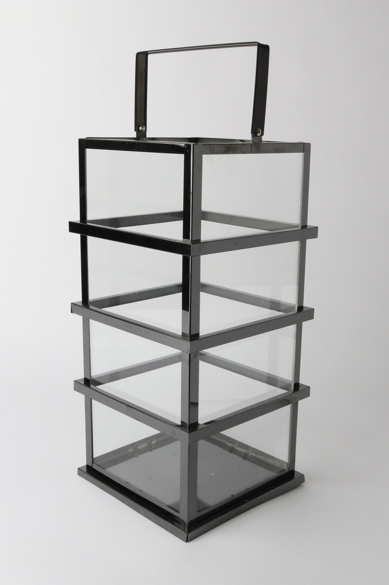Crafted with clean lines and clear glass panels, it reflects light beautifully — whether holding a pillar candle or styled as a decorative accent indoors or out. The polished black frame lends a modern edge, while its weight and proportion give it presence.