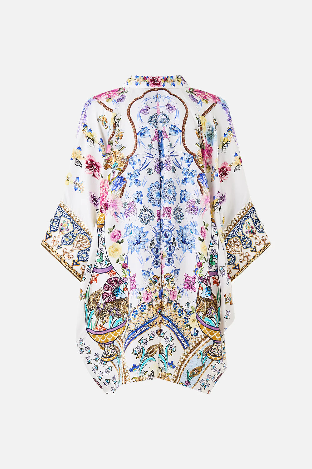 The All About That Lace Batwing Shirt is a handcrafted silk silhouette designed by our in house artisans. Reimagined in an exclusive limited edition print, this batwing shirt features raglan sleeves framed by a collared neckline. Adorned with buttoned cuffs, it's finished with crystal embellishment for luminous detail.