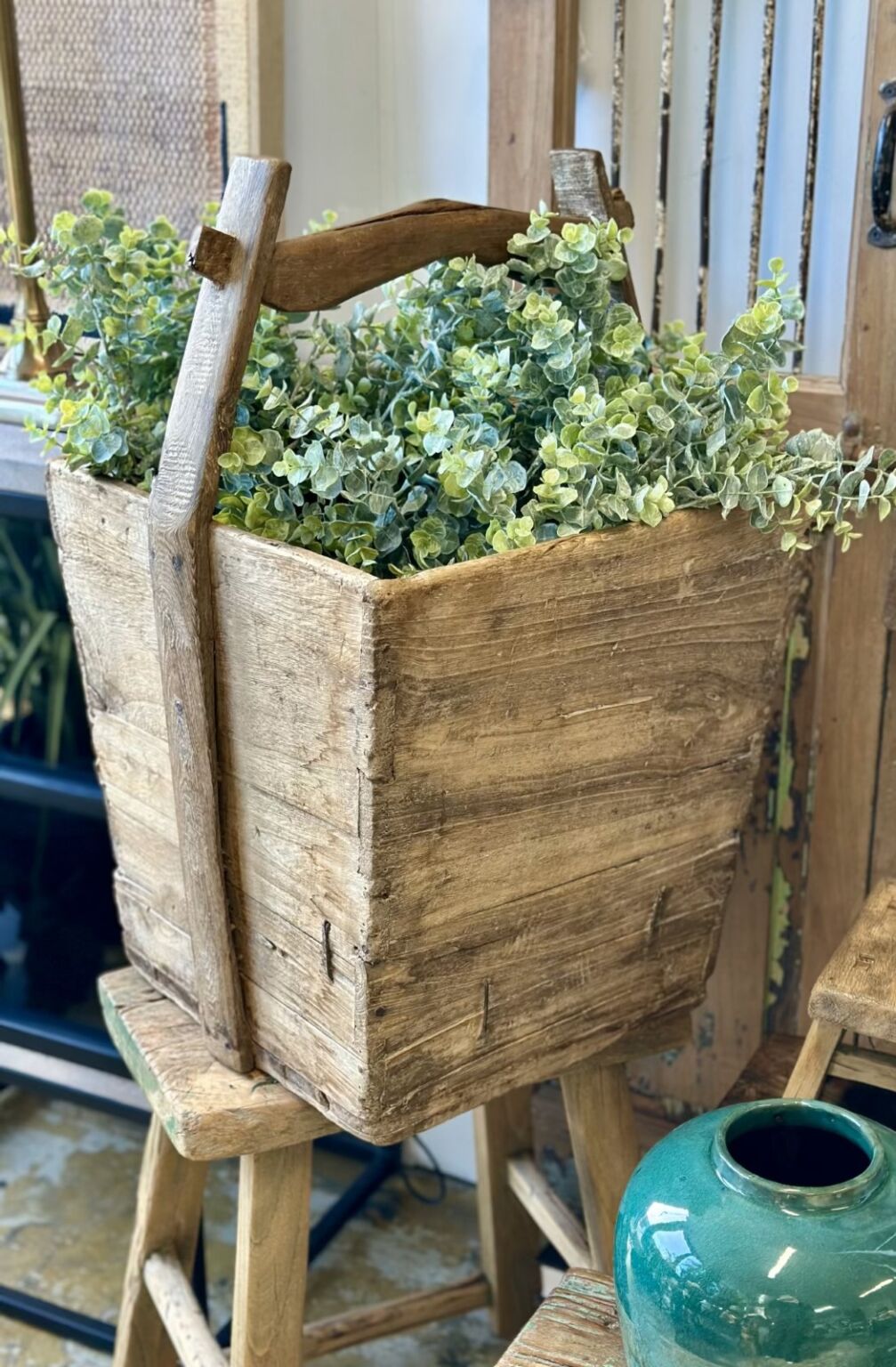 Restored and ready for new purpose, they make striking decorative pieces — ideal for storing blankets, holding kindling by the fire, or displaying an abundance of forever-faux botanicals.