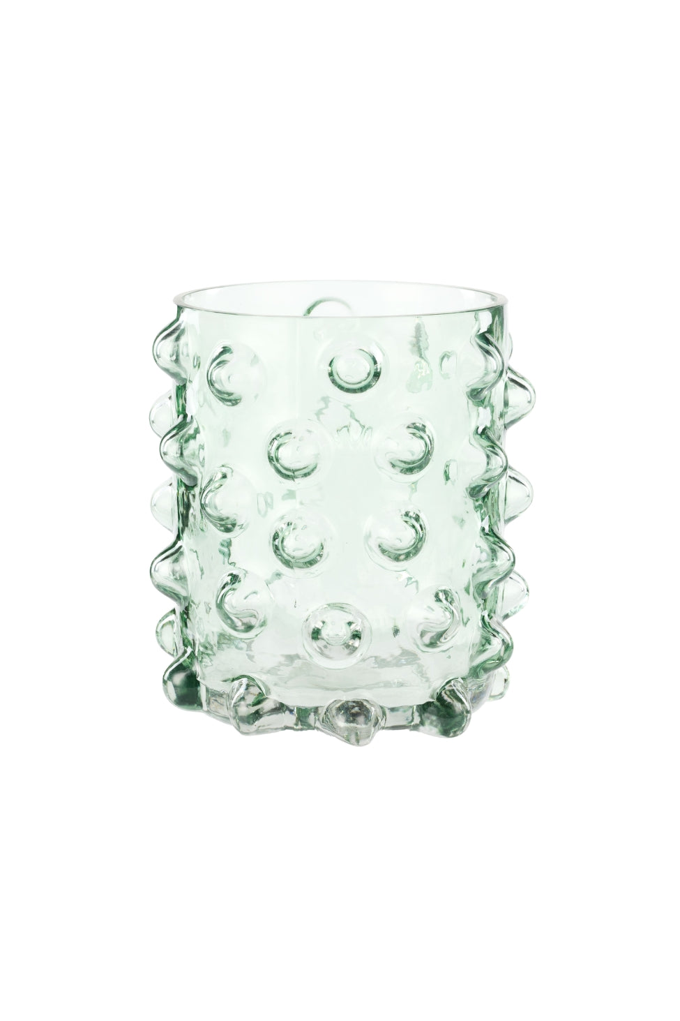 Raised glass bubbles catch the light and demand a second look. The soft sage tinted glass keeps things fresh and contemporary, while the tactile surface gives it that boutique-gallery edge.