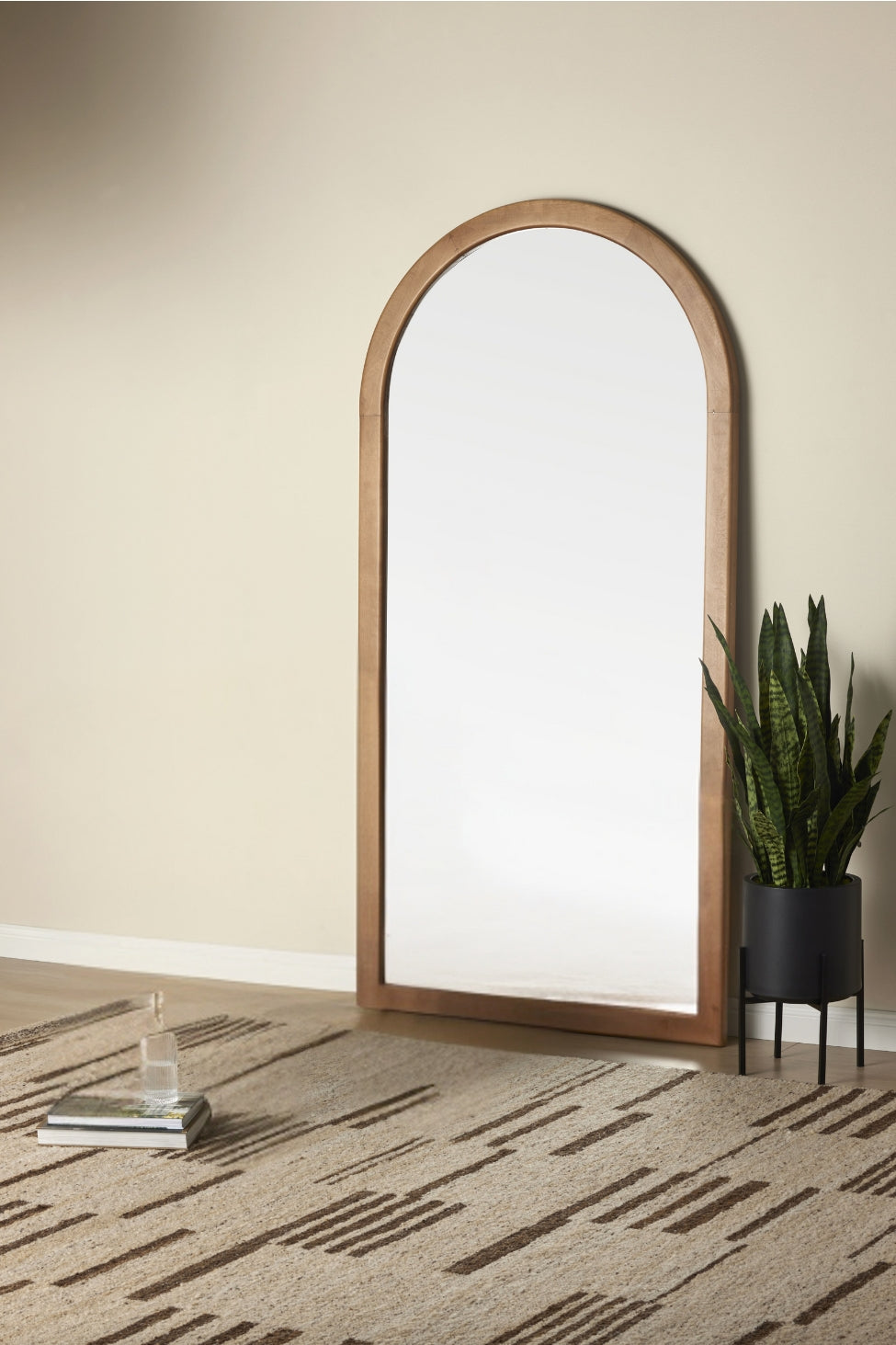 A statement piece with soul. The Paragon Arch Mirror brings warm, architectural elegance to your space — a tall, sweeping curve crafted from birchwood and finished in a rich walnut tone for that modern-meets-mid-century mood.