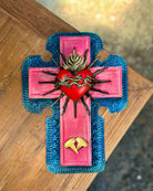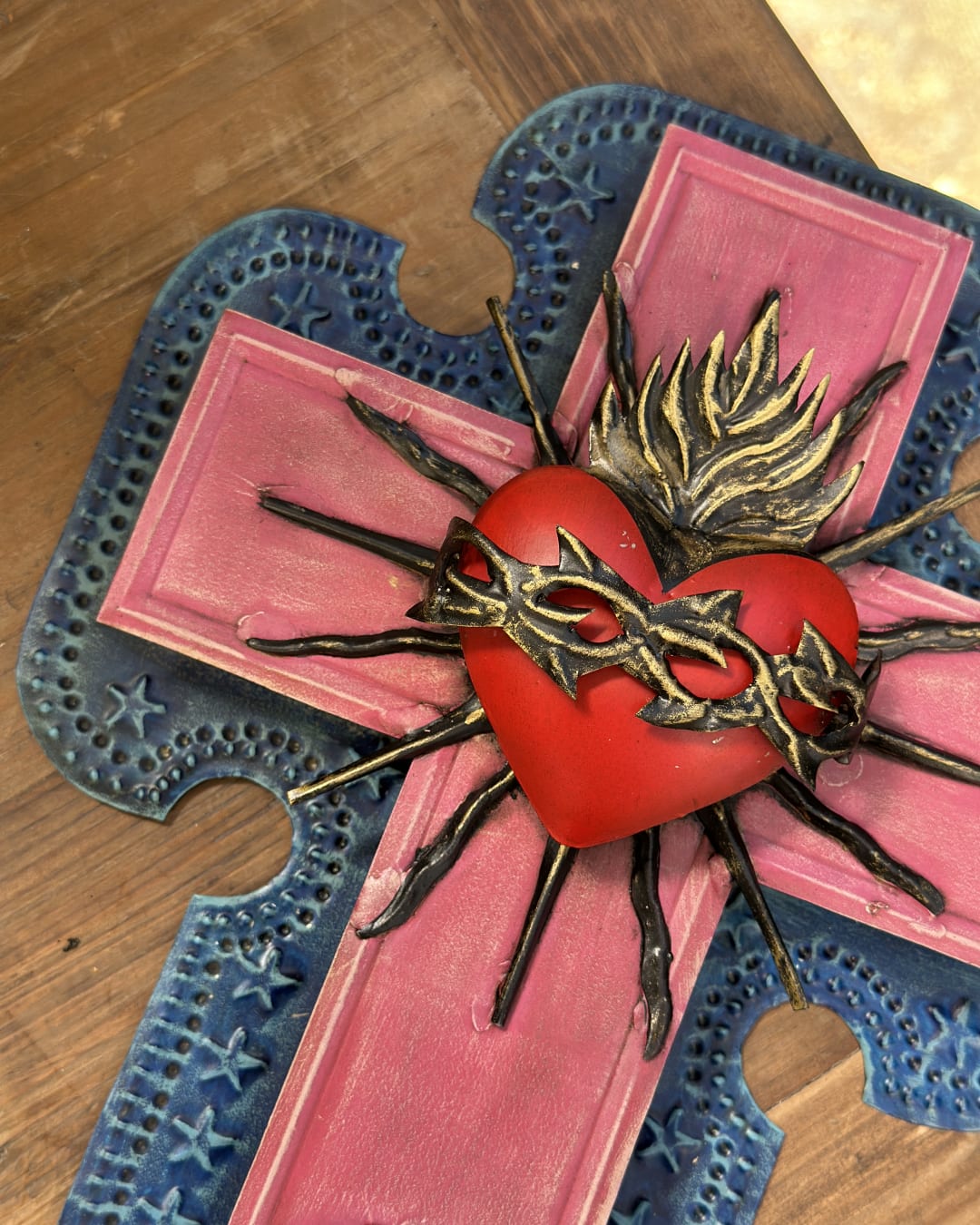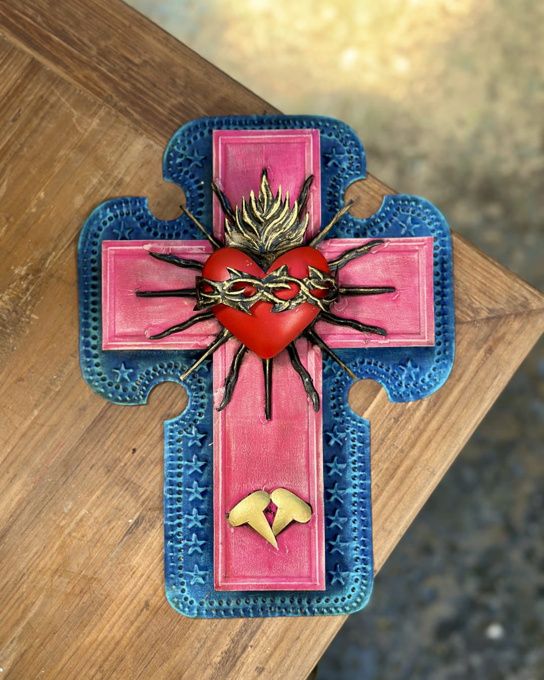 Adorned with tiny metal charms, no two are the same. Whether crafted from rustic wood, detailed tin, or Talavera tile, each cross is a unique token of intention—equal parts artwork and amulet.