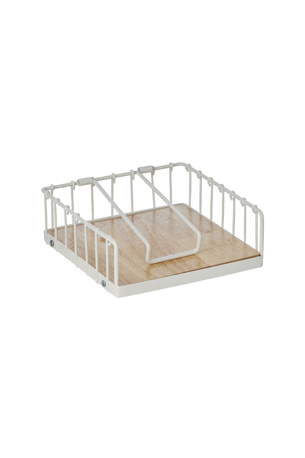 Organize your dining table with this charming and practical farmhouse-style napkin holder, featuring a clean white wire frame and a natural wooden base. Designed to keep napkins neatly in place with its clever weighted arm, this piece seamlessly combines functionality with rustic-modern aesthetics. An ideal kitchen accessory for everyday use or entertaining, it brings a tidy, inviting touch to any kitchen countertop, dining area, or outdoor setting.