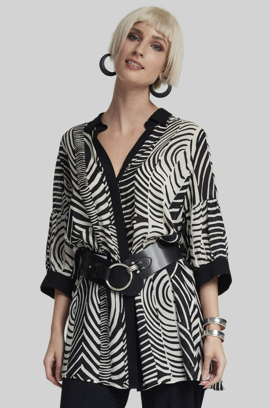 PAULA RYAN O Ring Leather Belt - Black/Nickel