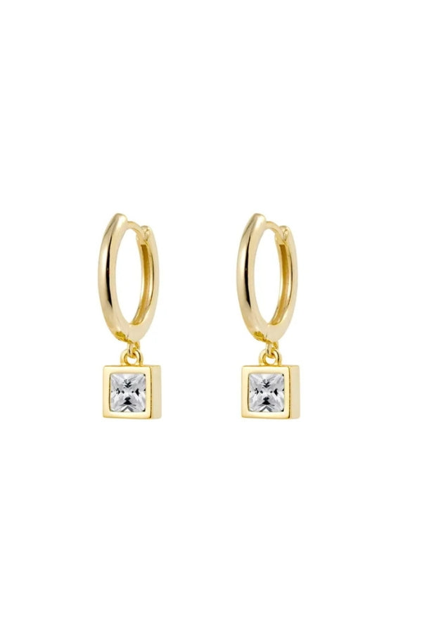 the Aurora Huggie features a sleek gold-plated hoop and a suspended princess-cut white CZ drop. Made from sterling silver, this pair is your go-to for subtle sparkle that works from morning meetings to moonlit dinners. Crafted from sterling silver.
