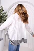 LEONI Kali Shirt - White Navy Stripe