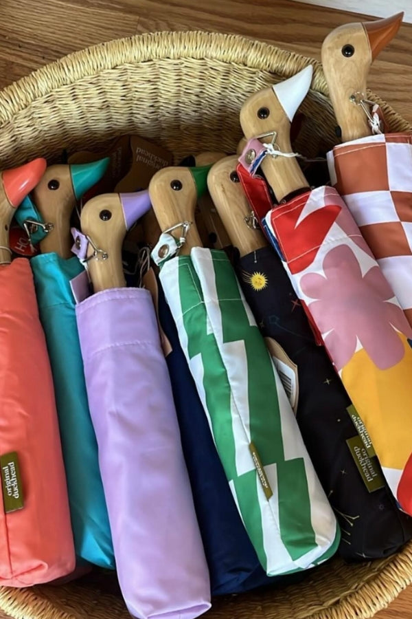 Rainy days, meet your match. 🦆 These eco-friendly Duckhead Umbrellas are as charming as they are clever — compact, lightweight, and made from 9 recycled bottles. A travel essential with a side of personality.