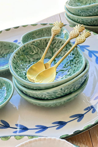 Bring relaxed island spirit to a shared platter or cluster of condiments by including our tropical palm spoon in a warm brass finish. Also perfect for stirring a long tropical cocktail!